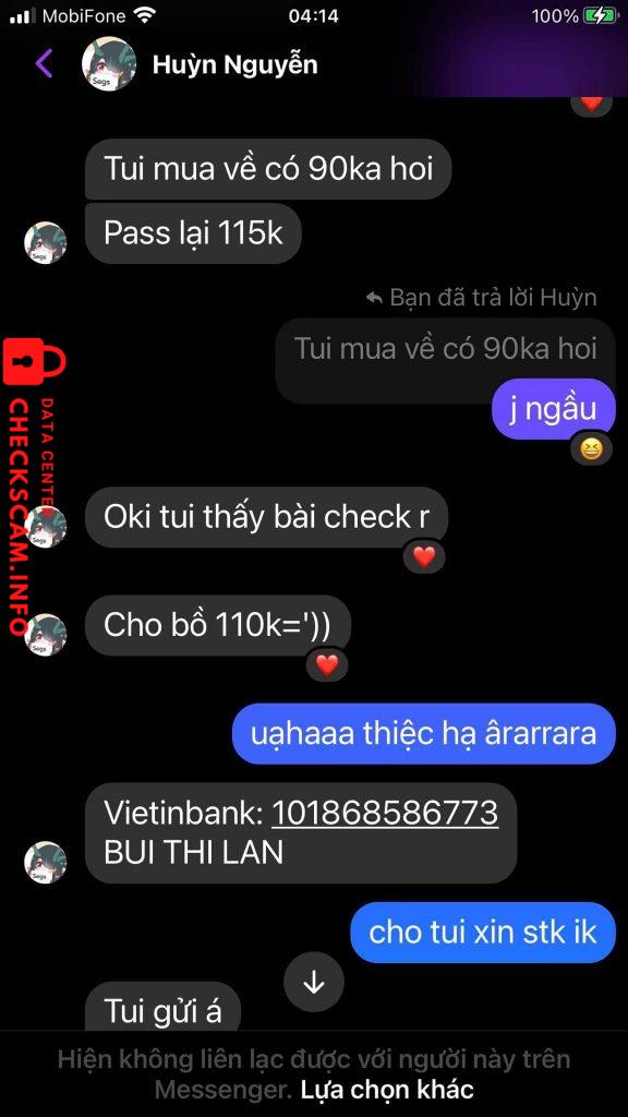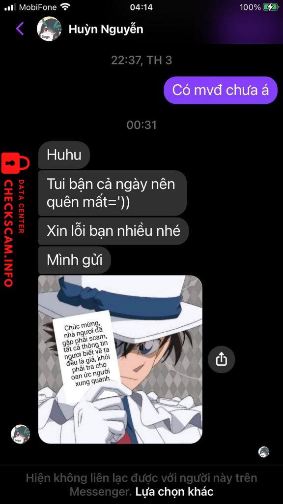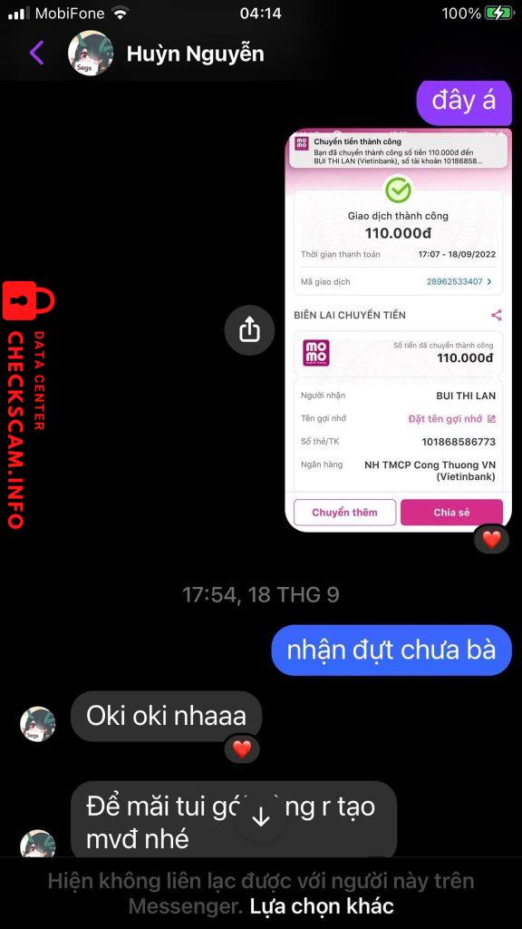 Scammer Alert: Huyền Nguyễn Reported: November 16, 2024 Scammer Information Full Name: Huyền Nguyễn Payment Gate: Vietinbank Payment Account: 101868586773 Category: Marketplace scams Source: Checkscam Evidence Files Report Description Sống cho tốt kẻo có ngày gặp quả báo =)) Thân gửi em Huyền ? Comments Your comment Add Comment No comments yet. Be the first to share your experience with this scammer.