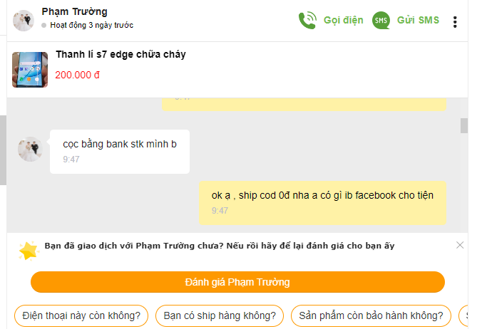 Bán đồ giá thanh lý lừa cọc trước hết mới ship, không cọc qua chợ tốt bắt nhắn vô zalo có nhân viên rep gì đấy, rồi lặn, sdt 0926746784 zalo hay đổi tên tùm lum tên thật Phạm Văn Trường sinh năm 1991 người lớn vậy mà đi lừa trẻ con xong quay lại chửi 😀 đã bay nick chotot