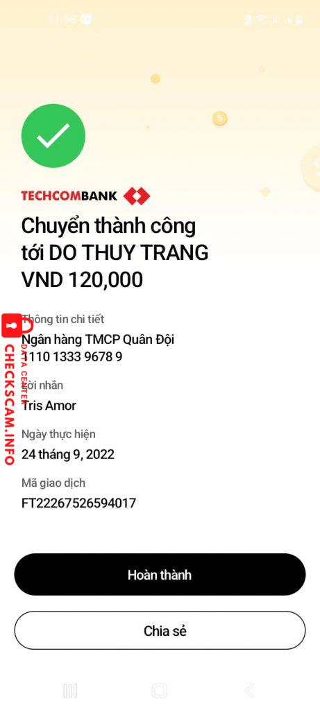 Scammer Alert: Do Thuy Trang Reported: November 16, 2024 Scammer Information Full Name: Do Thuy Trang Payment Gate: MB Payment Account: 1110133396789 Category: Marketplace scams Source: Checkscam Evidence Files Report Description Scammer group NEWJEANS Market – MUA BÁN TRAO ĐỔI Comments Your comment Add Comment No comments yet. Be the first to share your experience with this scammer.