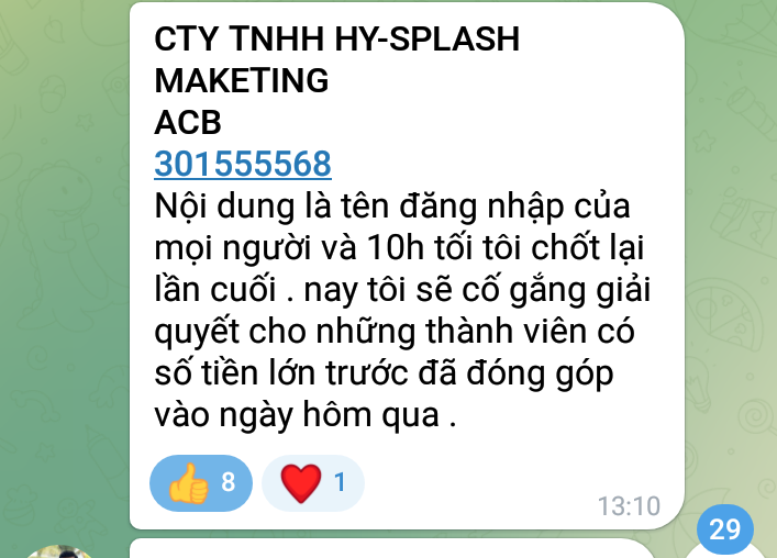 Scammer Alert: CONG TY TNHH HY SPALSH MAKETING