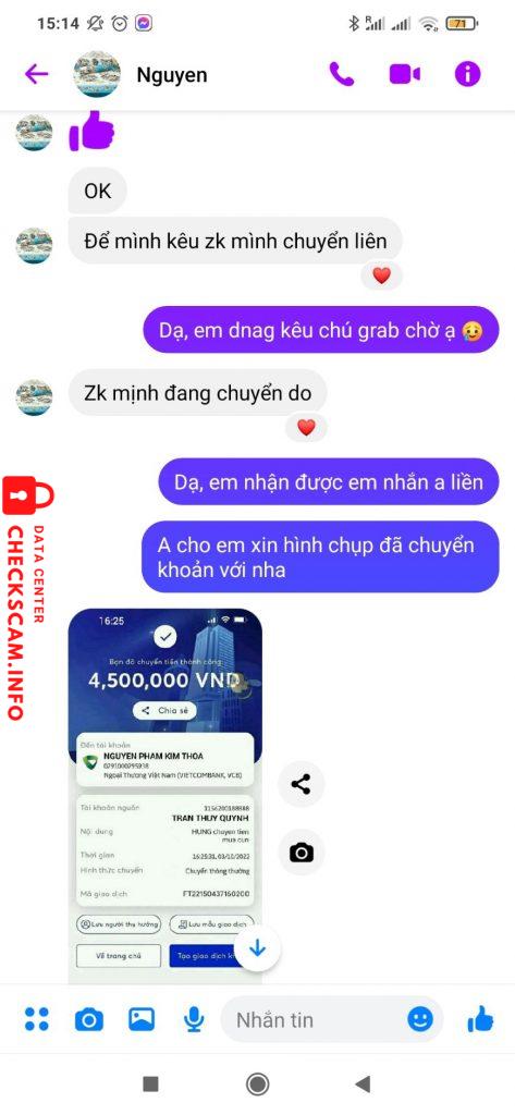 Scammer Alert: TRAN THUY QUYNH Reported: November 16, 2024 Scammer Information Full Name: TRAN THUY QUYNH Phone Number: 0899608328 Payment Gate: MB Payment Account: 1156200188888 Category: Marketplace scams Source: Checkscam Evidence Files Report Description Mua chó, chụp hình ck nhưng hơn 1 ngày chưa nhận được, đã khoá sim, địa chỉ 560a nguyễn kiệm, phú nhuận, k biết địa chỉ có chính xác k Comments Your comment Add Comment No comments yet. Be the first to share your experience with this scammer.