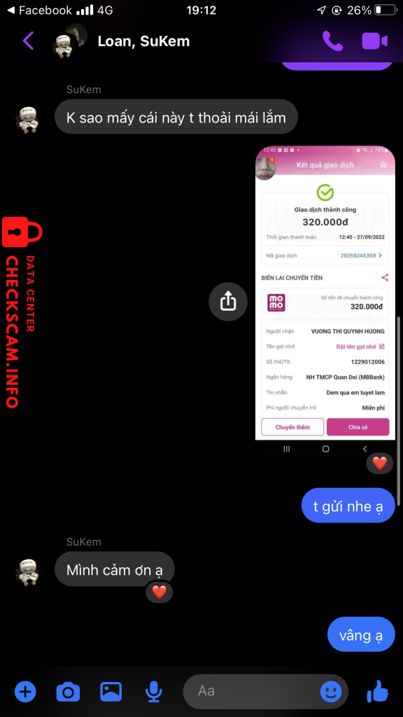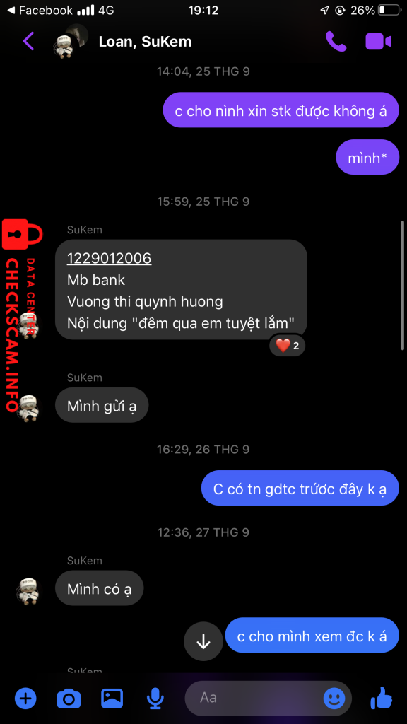 27/9: b ý gửi tngd trước đây, mình cũng không nghi ngờ gì, bạn y thì nhượng bé suhyun cho một bạn khác. một lúc sau mình ck rồi xin nợ b scam 30k.