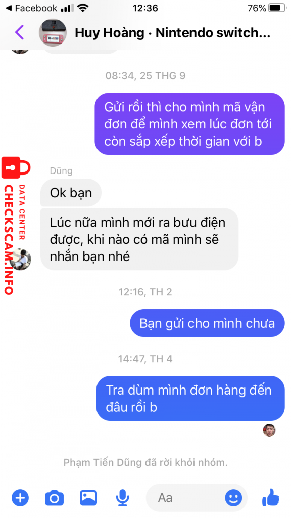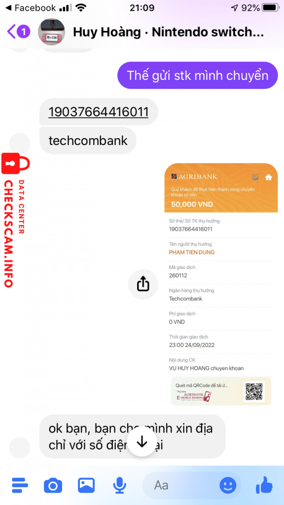 Scammer Alert: NGUYEN TIEN DUNG Reported: November 16, 2024 Scammer Information Full Name: NGUYEN TIEN DUNG Payment Gate: Techcombank Payment Account: 19037664416011 Category: Marketplace scams Source: Checkscam Evidence Files Report Description Bán game lừa tiền cọc Comments Your comment Add Comment No comments yet. Be the first to share your experience with this scammer.