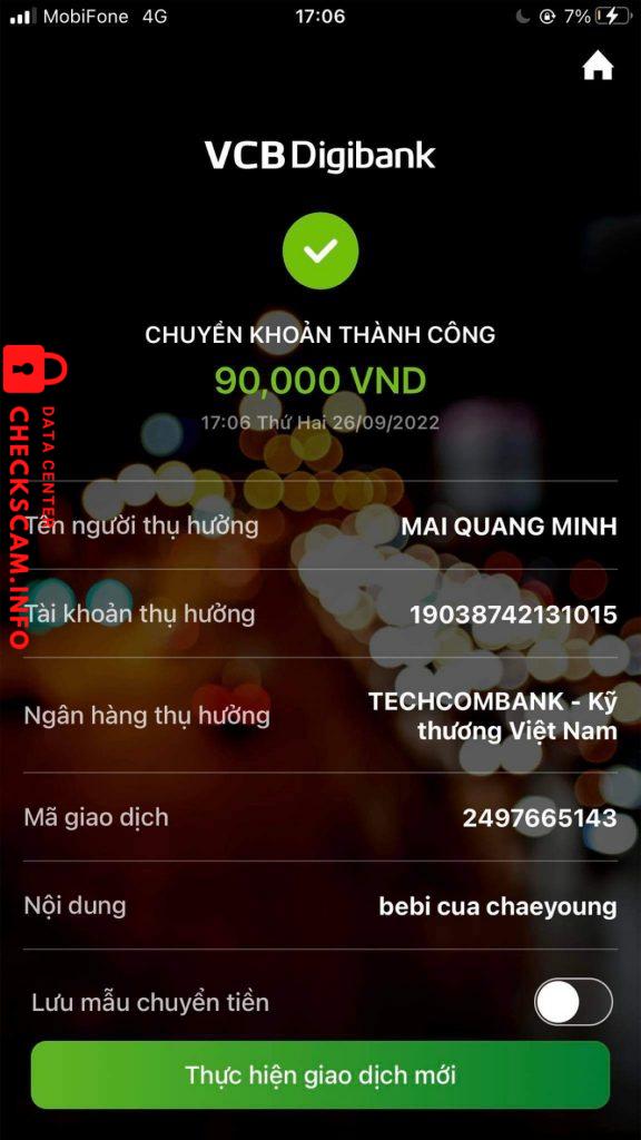 Scammer Alert: Mai Quang Minh Reported: November 16, 2024 Scammer Information Full Name: Mai Quang Minh Payment Gate: Techcombank Payment Account: 19038742131015 Category: Marketplace scams Source: Checkscam Evidence Files Report Description ?? lừa đảo scam ạ Comments Your comment Add Comment No comments yet. Be the first to share your experience with this scammer.