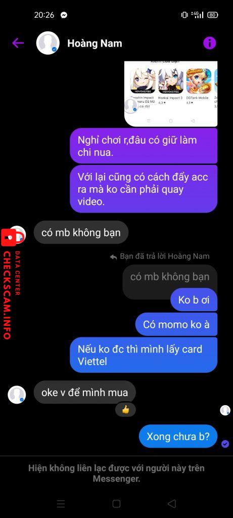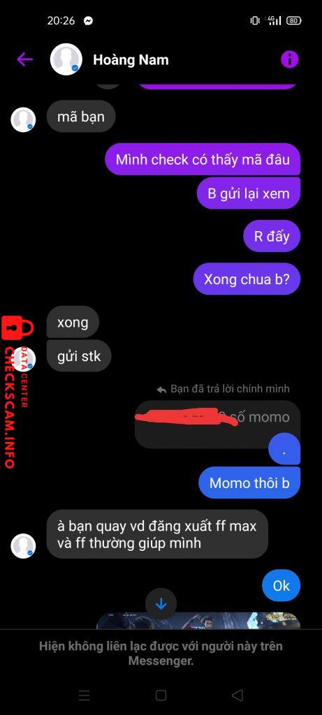 Scammer Alert: LE HONG NAM Reported: November 16, 2024 Scammer Information Full Name: LE HONG NAM Phone Number: 0384276519 Payment Gate: MB BANK Payment Account: 19105278476439 Category: Marketplace scams Source: Checkscam Evidence Files Report Description Có 90k cũng scam nữa thì chịu ạ,chắc thiếu thốn dữ lắm ?. Comments Your comment Add Comment No comments yet. Be the first to share your experience with this scammer.