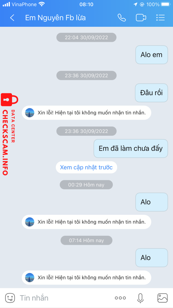 Scammer Alert: LE HUU NGUYEN Reported: November 16, 2024 Scammer Information Full Name: LE HUU NGUYEN Phone Number: 0706267517 Payment Gate: VPBank Payment Account: 255944808 Category: Marketplace scams Source: Checkscam Evidence Files Report Description Chuyển tiền xong đối tượng chặn ko nhận tin nhắn. Không thực hiện yêu cầu. Mọi người chú ý Comments Your comment Add Comment No comments yet. Be the first to share your experience with this scammer.