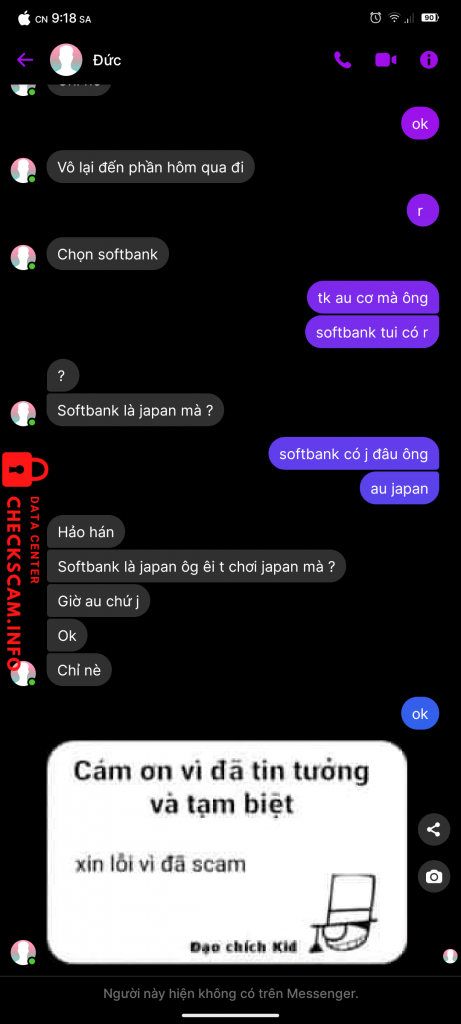 Scammer Alert: TRAN PHAN ANH DUC Reported: November 16, 2024 Scammer Information Full Name: TRAN PHAN ANH DUC Payment Gate: mbbank Payment Account: 300420072347 Category: Marketplace scams Source: Checkscam Evidence Files Report Description lừa đảo tạo tk GeForce now Comments Your comment Add Comment No comments yet. Be the first to share your experience with this scammer.