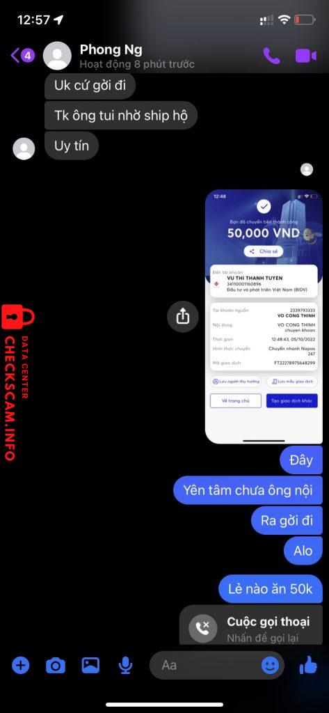 Scammer Alert: VU THI THANH TUYEN Reported: November 16, 2024 Scammer Information Full Name: VU THI THANH TUYEN Payment Gate: BIDV Payment Account: 34110001160896 Category: Marketplace scams Source: Checkscam Evidence Files Report Description lừa đảo cọc tiền bàn phím máy tính Comments Your comment Add Comment No comments yet. Be the first to share your experience with this scammer.