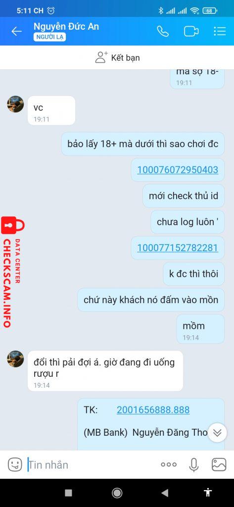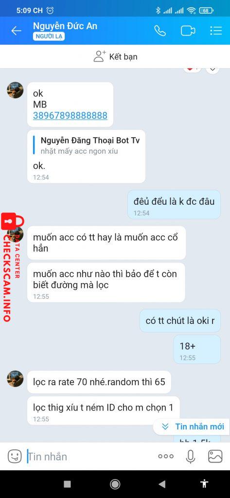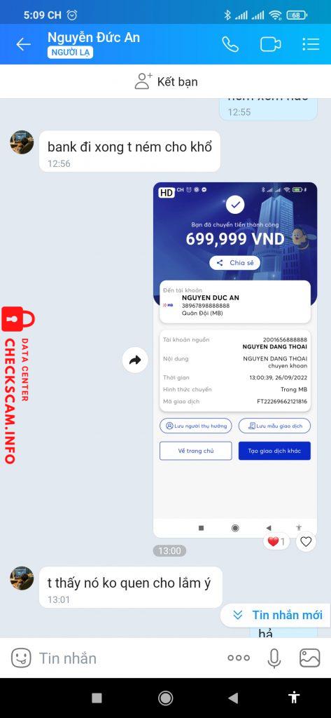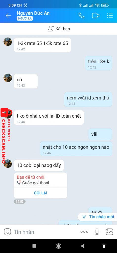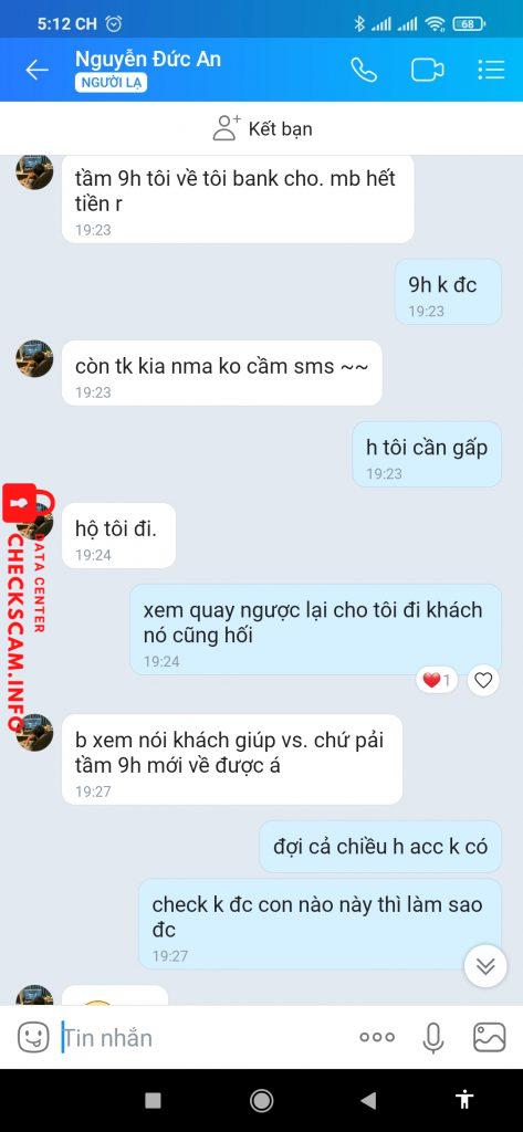 Scammer Alert: Nguyễn Đức An Reported: November 16, 2024 Scammer Information Full Name: Nguyễn Đức An Phone Number: 0976912446 Payment Gate: MB Payment Account: 38967898888888 Category: Marketplace scams Source: Checkscam Evidence Files Report Description bán acc k đúng theo thỏa thuận, treo đầu dê bán thịt chó. không xử lí trốn tránh trách nhiệm. lừa đảo Comments Your comment Add Comment No comments yet. Be the first to share your experience with this scammer.
