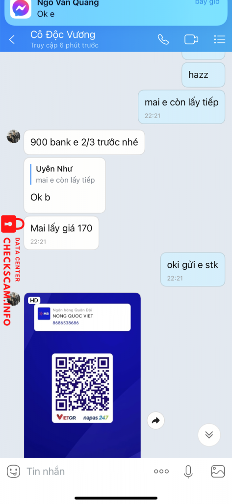 Scammer Alert: Nông Quốc Việt Reported: November 16, 2024 Scammer Information Full Name: Nông Quốc Việt Payment Gate: MB Bank Payment Account: 8686538686 Category: Marketplace scams Source: Checkscam Evidence Files Report Description Lừa đảo bảo bán page nhưng lặn ạ Comments Your comment Add Comment No comments yet. Be the first to share your experience with this scammer.