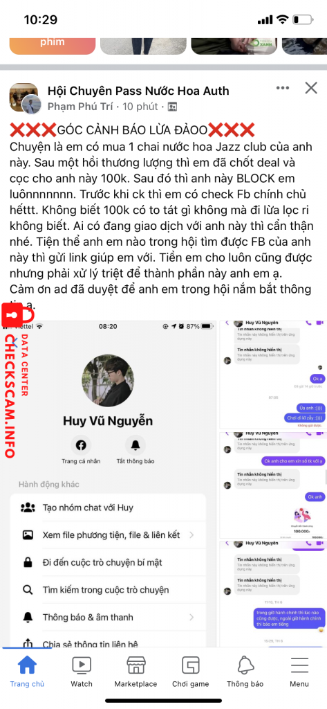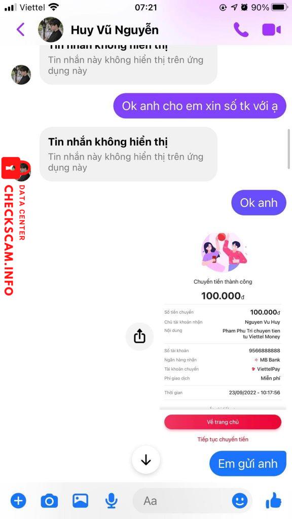 Scammer Alert: Nguyễn Vũ Huy Reported: November 16, 2024 Scammer Information Full Name: Nguyễn Vũ Huy Payment Gate: Mb bank Payment Account: 9566888888 Category: Marketplace scams Source: Checkscam Evidence Files Report Description Lừa đảo cọc nước hoa, đã nhiều người vào cmt xác nhận bị lừa Comments Your comment Add Comment No comments yet. Be the first to share your experience with this scammer.