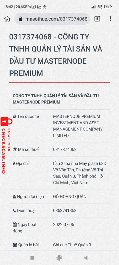 Scammer Alert: CT TNHH QLTS DT MASTERNODE PREMIUM