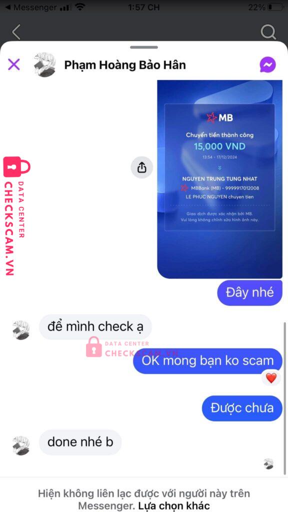 Scammer Alert: 9999917012008 Reported: March 7, 2025 Scammer Information Full Name: 9999917012008 Payment Gate: Mb Payment Account: Nguyentrungtungnhat Category: Marketplace scams Source: Checkscam Evidence Files Report Description Thuê tk tải app lừa đảo block Comments Your comment Add Comment No comments yet. Be the first to share your experience with this scammer.
