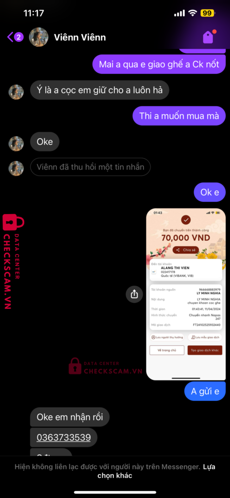 Ban Viên Viênn nay có rao bán đồ thanh lý trên hoi nhóm. Mình có chuyển khoản cọc và hiện tại không liên lạc được nữa. Mong add xem xét và có biện pháp để tránh nhiều người khác bị lừa