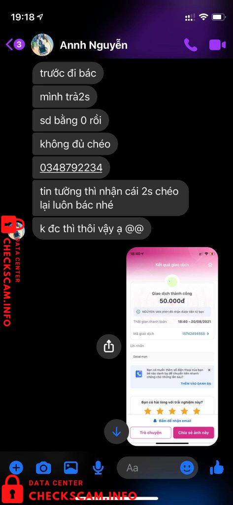 Scammer Alert: Anh Nguyễn Reported: November 16, 2024 Scammer Information Full Name: Anh Nguyễn Phone Number: 0348792234 Payment Gate: MOMO Payment Account: 0348792234 Category: Marketplace scams Source: Checkscam Evidence Files Report Description Facebook Annh Nguyễn SĐT :0348792234 MOMO : 0348792234 Lợi dụng sự kiện momo chuyển 50k để hưởng vochure đi lừa đảo Comments Your comment Add Comment No comments yet. Be the first to share your experience with this scammer.