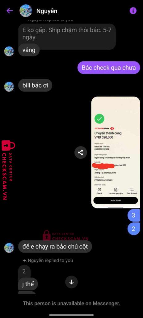 Scammer Alert: BIEN THI THU HA Reported: March 7, 2025 Scammer Information Full Name: BIEN THI THU HA Payment Gate: Vietcombank Payment Account: 0591000332304 Category: Marketplace scams Source: Checkscam Evidence Files Report Description Lừa scam chuột 520k. Đã check stk này trên hệ thống nhưng không thấy gì nên mới chuyển nhưng ăn ngay scam Comments Your comment Add Comment No comments yet. Be the first to share your experience with this scammer.