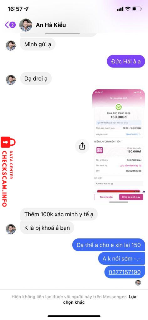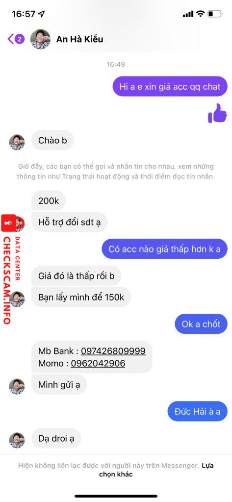 Scammer Alert: BUI DUC HAI Reported: November 16, 2024 Scammer Information Full Name: BUI DUC HAI Phone Number: 0962042906 Payment Gate: MB Bank Payment Account: 097426809999 Category: Marketplace scams Source: Checkscam Evidence Files Report Description Chuyên lừa đảo bán acc QQ, các bạn chú ý tên stk và sđt của nó để tránh bị lừa nhứ. Nó rất hay đổi tên Facebook mọi người cẩn thận. Comments Your comment Add Comment No comments yet. Be the first to share your experience with this scammer.