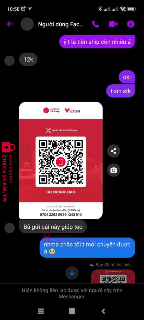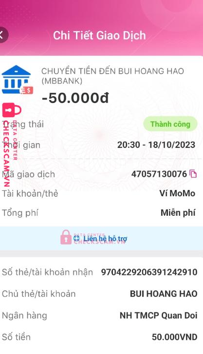 Scammer Alert: BUI HOANG HAO Reported: November 16, 2024 Scammer Information Full Name: BUI HOANG HAO Payment Gate: MB BANK Payment Account: 9704229206391242910 Category: Marketplace scams Source: Checkscam Evidence Files Report Description linh hảo/linh đan pass đồ nhưng khi chuyển khoản thì không gửi hàng và block Comments Your comment Add Comment No comments yet. Be the first to share your experience with this scammer.