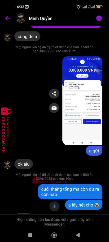 Scammer Alert: Bùi Minh Quyền Reported: November 16, 2024 Scammer Information Full Name: Bùi Minh Quyền Payment Gate: MB Bank Payment Account: 999911112006 Category: Marketplace scams Source: Checkscam Evidence Files Report Description lừa đảo 6 triệu Comments Your comment Add Comment No comments yet. Be the first to share your experience with this scammer.