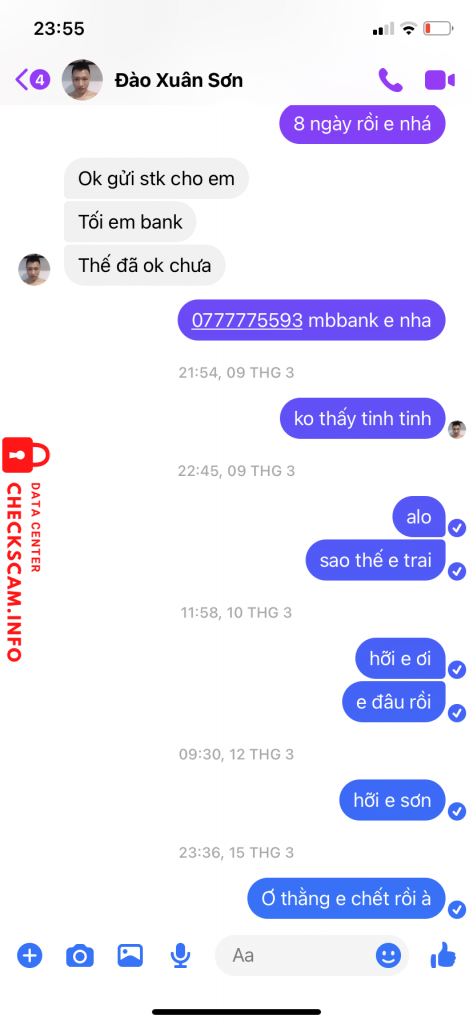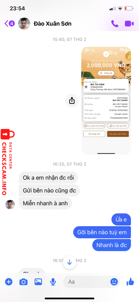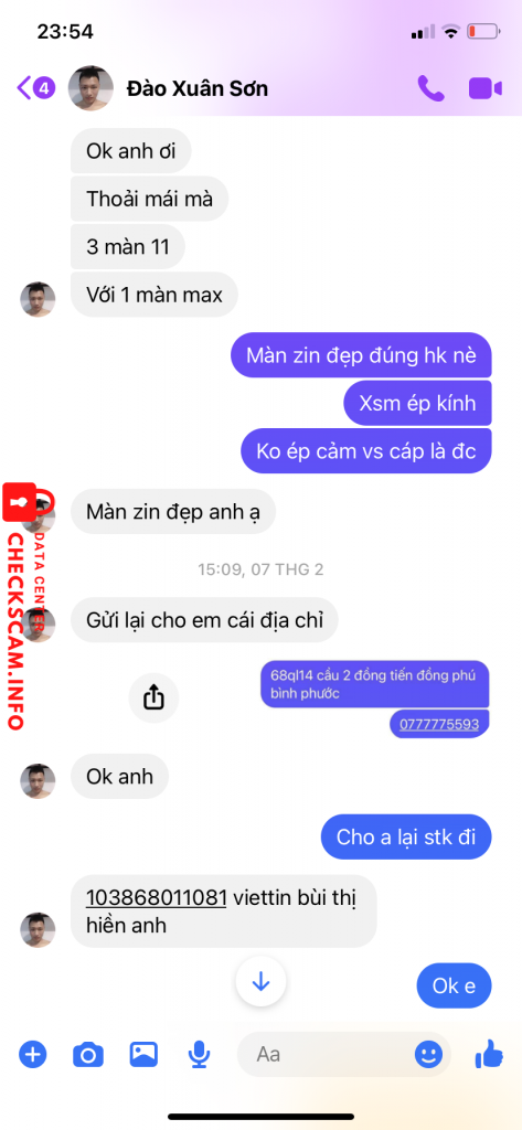 Scammer Alert: Bùi Thị Hiền Reported: November 16, 2024 Scammer Information Full Name: Bùi Thị Hiền Payment Gate: Viettinbank Payment Account: 103868011081 Category: Marketplace scams Source: Checkscam Evidence Files Report Description Nhận tiền cọc màn hình nhưng ko gởi hàng và cũng ko trả tiền lại, hiện đã mất tích và ko thể liên lạc. Comments Your comment Add Comment No comments yet. Be the first to share your experience with this scammer.
