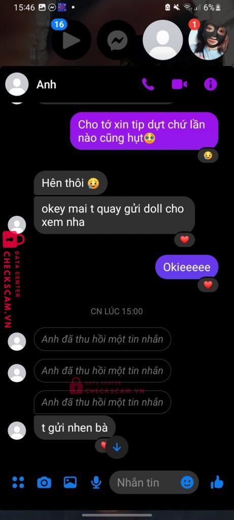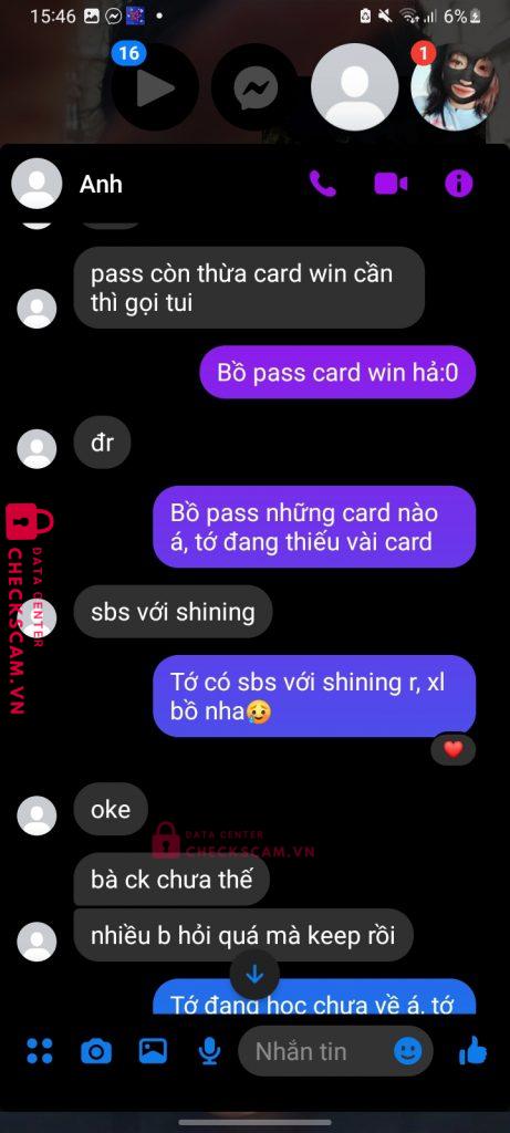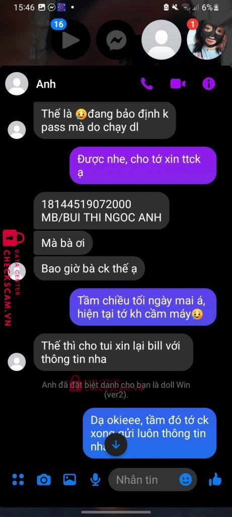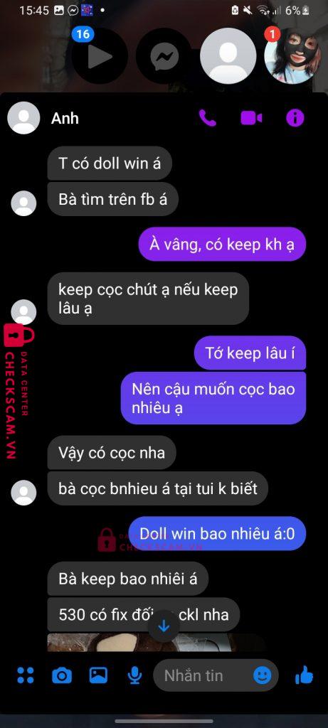 Bạn này pass doll win với giá 530k trên group trade nhượng goods thái lan, vì bạn ấy có tngdtc nên tin tưởng đã ck full. Sáng hôm sau thấy biệt tăm, lên bài hỏi nhiều người bảo là scam, bạn này không chỉ scam một người mà nhiều người, trong đó bao gồm bạn tớ cũng bị scam doll win 530k. Khoảng tiền bạn ấy scam có lẽ lên gần 2 triệu VNĐ hoặc hơn thế.