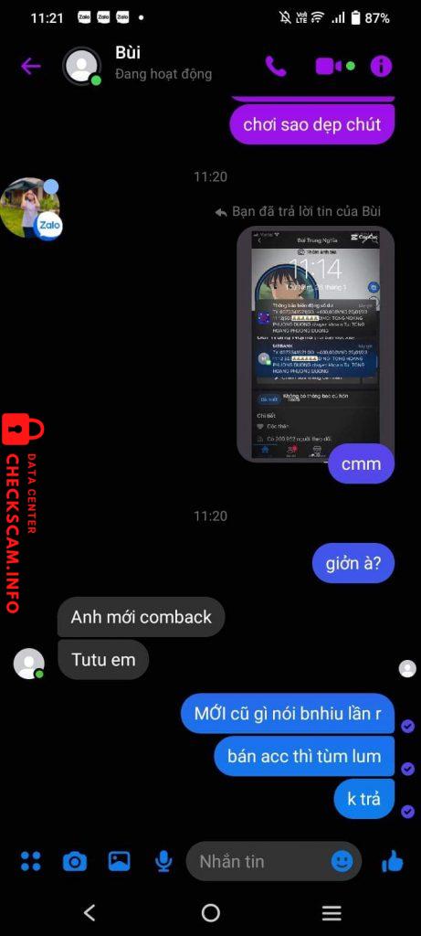 tui từng anh với bùi trung nghĩa tầm vài tháng trước anh ấy có bán 1 acc và tui mua tui bank tiền cho ảnh thì anh đó đưa acc 956 vài bảo trả lại tui và đến bây giờ không trả k llạc được