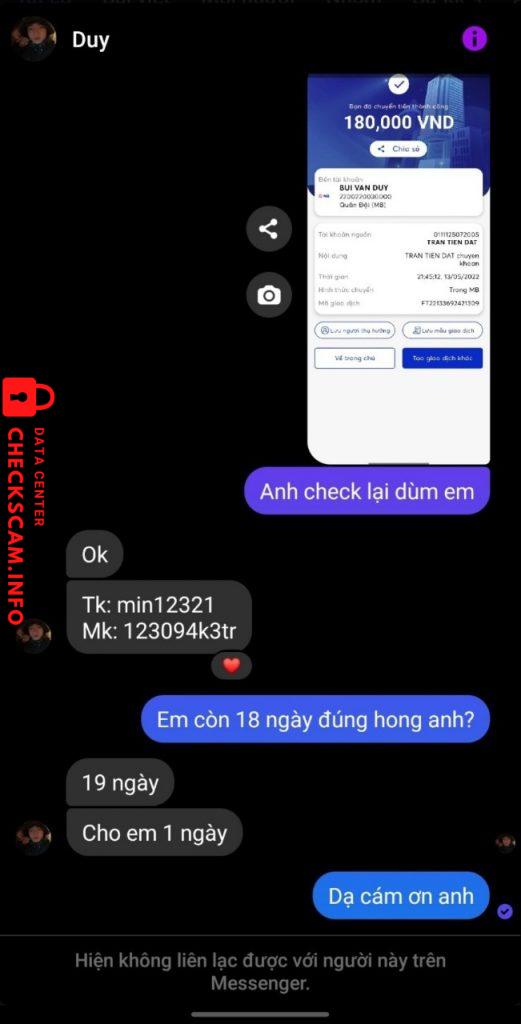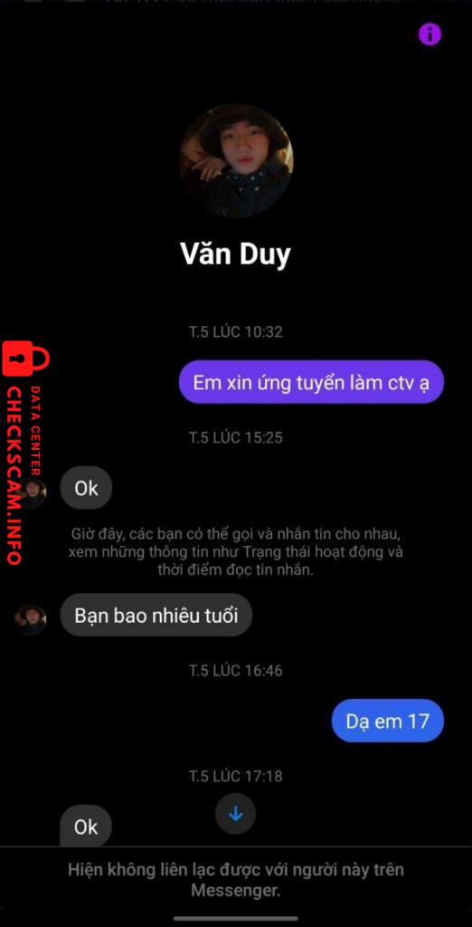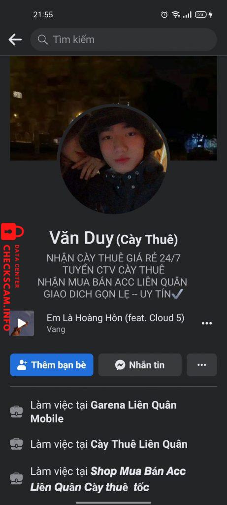 Bạn em ứng tuyển CTV cày thuê liên quân bên fb Văn Duy ( kèm ảnh ở trên ), bắt cọc ( cụ thể là 180k ), bạn em nhờ em chuyển cọc cho BUI VAN DUY dùm, sau khi chuyển cọc, thì fb Văn Duy block bạn em.