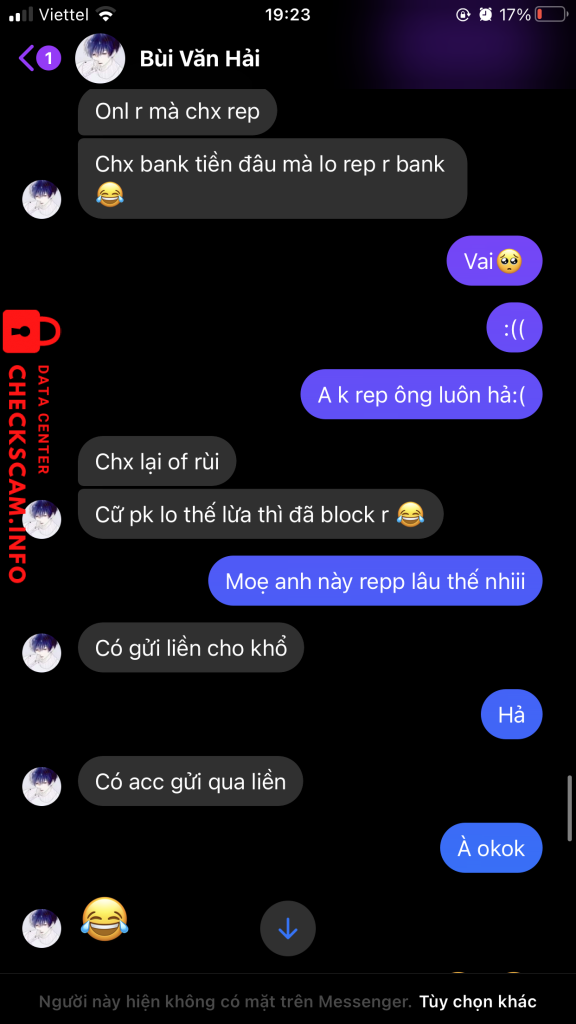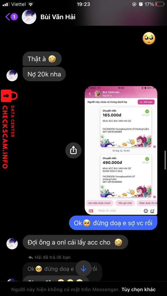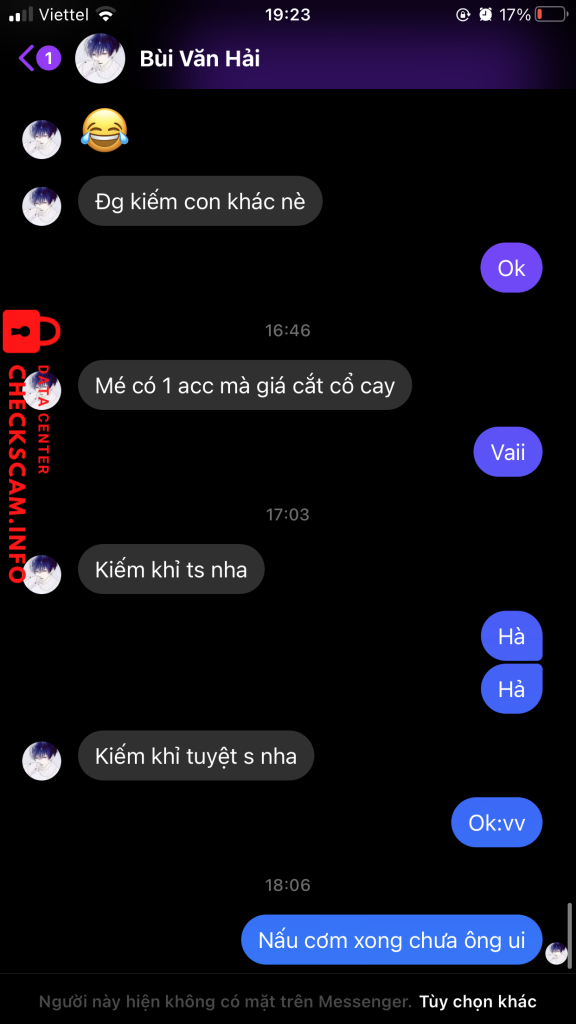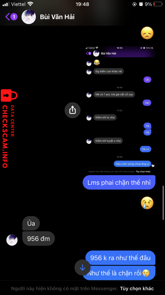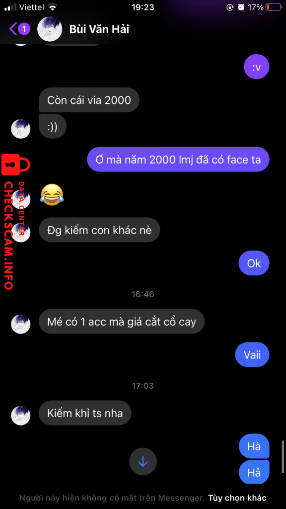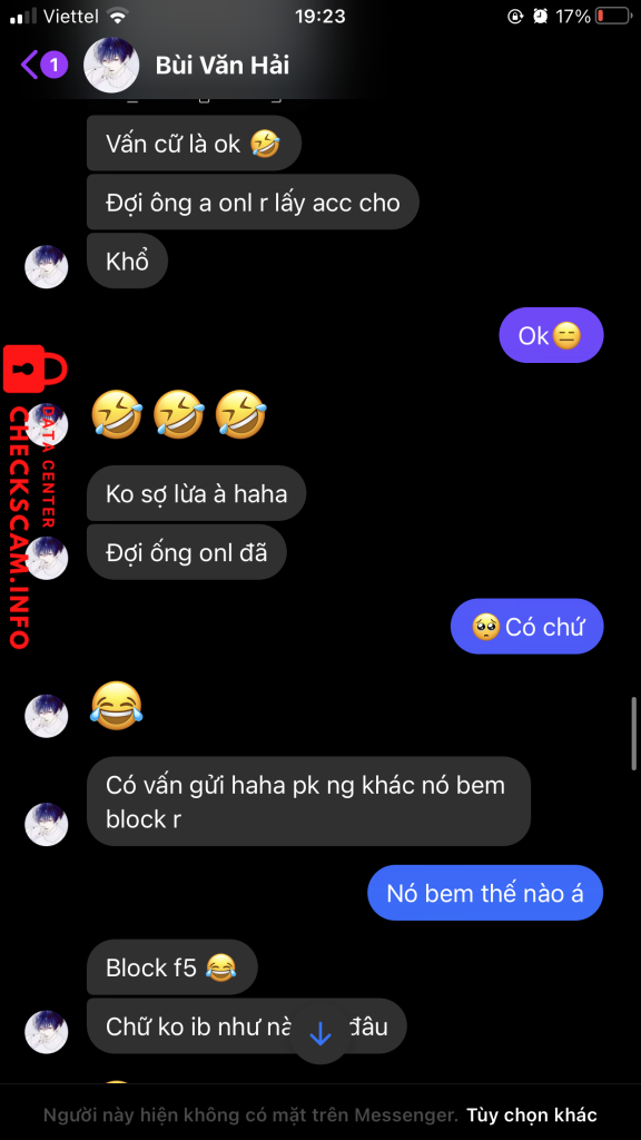 Nó sài 2 facebook lận nên cái acc BÙI VĂN Hải cũ vẫn chưa sao chép liên kết facebook thì nó đã chặn rồi. Nó cũng làm dịch vụ facebook và gạch thẻ nên , anh em đừng nên tin tưởng và giao dịch với nó.