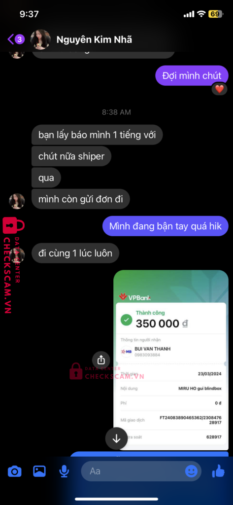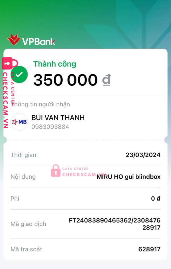 Scammer Alert: BUI VAN THANH Reported: November 16, 2024 Scammer Information Full Name: BUI VAN THANH Payment Gate: MBBANK Payment Account: 0983093884 Category: Marketplace scams Source: Checkscam Evidence Files Report Description Lừa đảo có vid thật nametag đầy đủ Comments Your comment Add Comment No comments yet. Be the first to share your experience with this scammer.