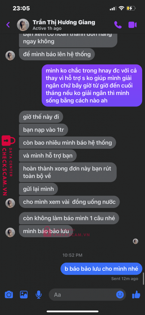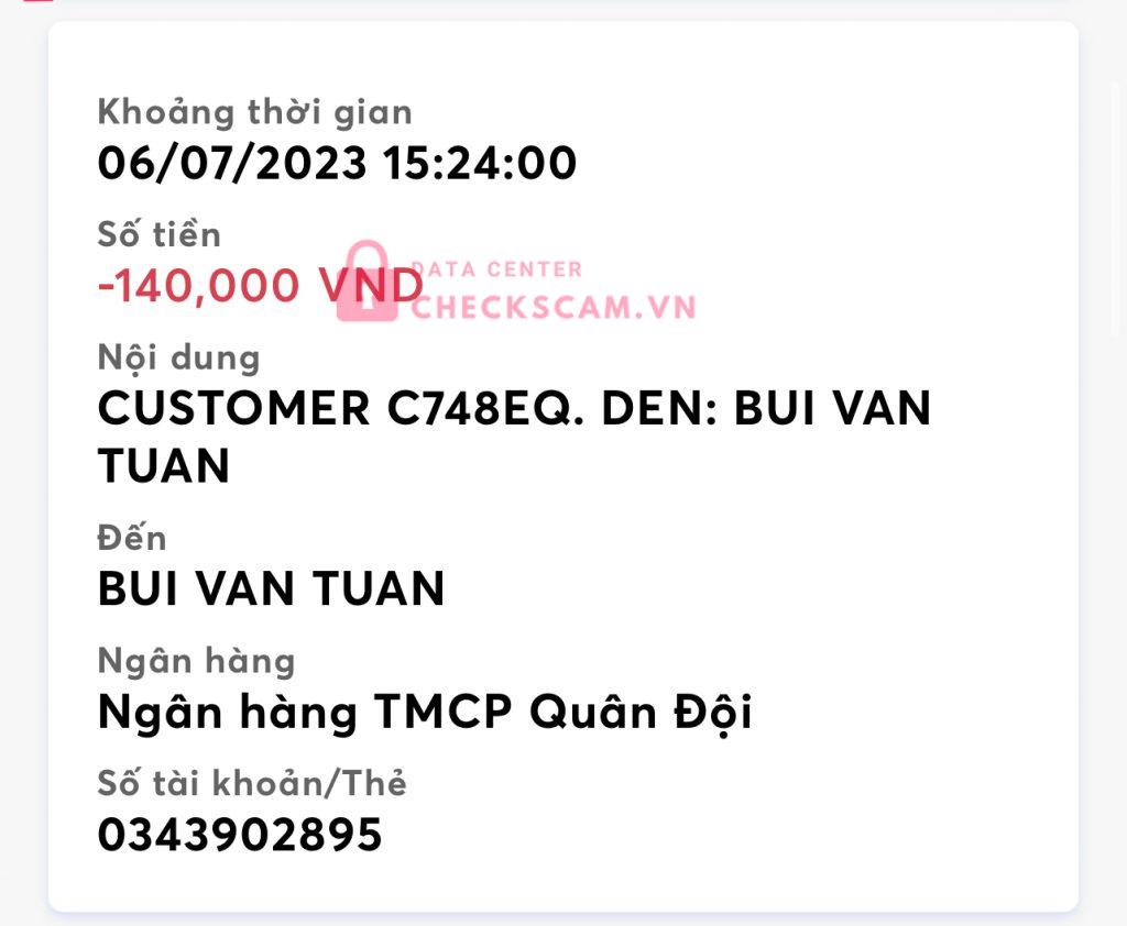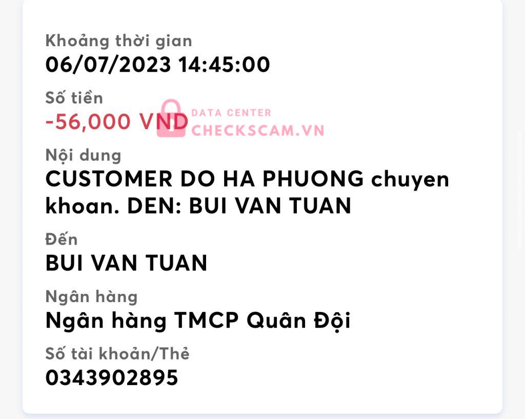 Scammer Alert: Bùi Văn Tuấn Reported: November 16, 2024 Scammer Information Full Name: Bùi Văn Tuấn Phone Number: 0343902895 Payment Gate: MB bank Payment Account: 0343902895 Category: Marketplace scams Source: Checkscam Evidence Files Report Description lừa đảo qua nhiều người và thường đăng những bào tuyển dụng trên mạng nhất là facebook đoạn cuối đoạn chat mình biết là lừa đảo rồi nên ko nhắn thêm Comments Your comment Add Comment No comments yet. Be the first to share your experience with this scammer.