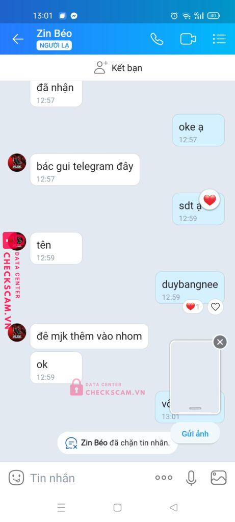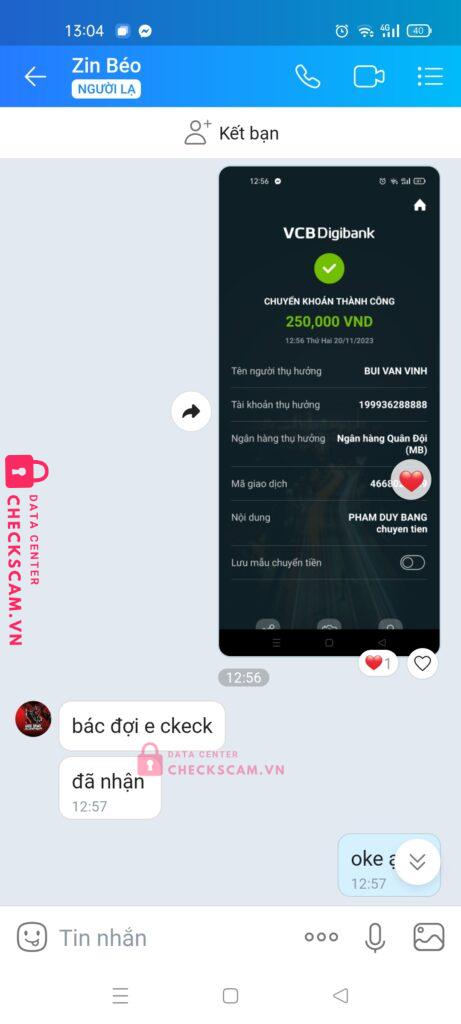 Scammer Alert: BUI VAN VINH Reported: November 16, 2024 Scammer Information Full Name: BUI VAN VINH Payment Gate: Ngân hàng Quân đội ( MB ) Payment Account: 199936288888 Category: Marketplace scams Source: Checkscam Evidence Files Report Description scam mua mod game Comments Your comment Add Comment No comments yet. Be the first to share your experience with this scammer.