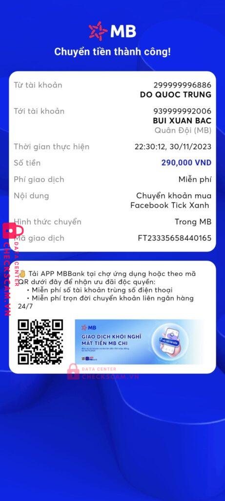 Scammer Alert: Bui Xuân Bắc Reported: November 16, 2024 Scammer Information Full Name: Bui Xuân Bắc Payment Gate: MB Bank Payment Account: 939999992006 Category: Marketplace scams Source: Checkscam Evidence Files Report Description Lừa đảo Scam ( Ae mua bán Check Facebook kĩ nhé ) Có 3 tên nó gợi ý GDTD : Comments Your comment Add Comment No comments yet. Be the first to share your experience with this scammer.