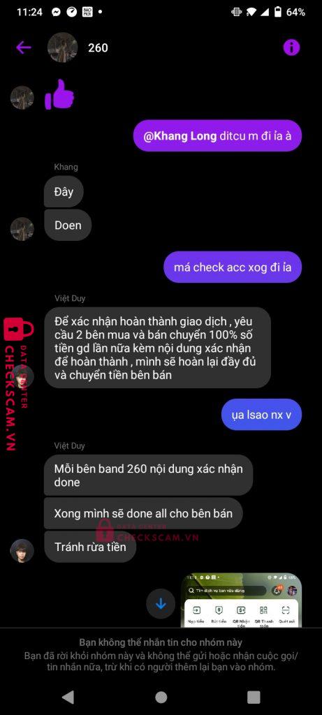 Scammer Alert: CAO VIET DUY Reported: November 16, 2024 Scammer Information Full Name: CAO VIET DUY Payment Gate: 555555492006 Payment Account: 0868655248 Category: Marketplace scams Source: Checkscam Evidence Files Report Description tôi bị lừa tiền khi giao dịch qua admin Cao Việt Duy Comments Your comment Add Comment No comments yet. Be the first to share your experience with this scammer.