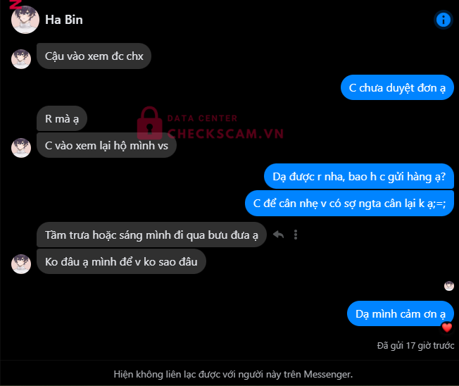 Mình có mua của bạn này 2 cuốn truyện, bạn này chụp cho mình xem hàng thì mình cũng tin và ck, sau đó bạn này có tạo đơn cho mình nhưng sau đó hủy ngay và block mình