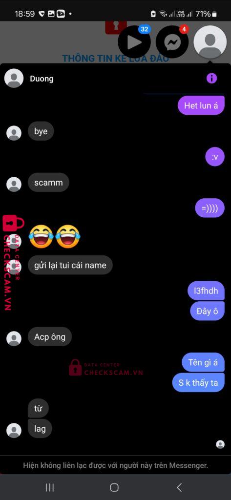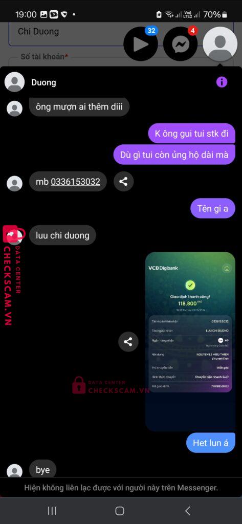 Scammer Alert: Chi Duong Reported: March 7, 2025 Scammer Information Full Name: Chi Duong Payment Gate: Mb bank Payment Account: 0336153032 Category: Marketplace scams Source: Checkscam Evidence Files Report Description Gdtg với nó thì uy tín Mà thẳng thì scam . Comments Your comment Add Comment No comments yet. Be the first to share your experience with this scammer.