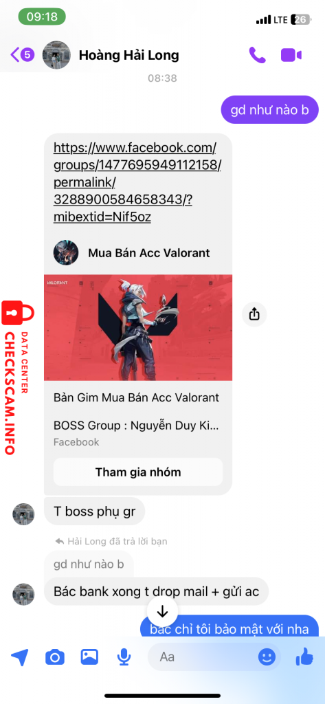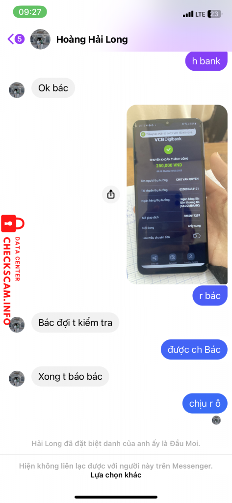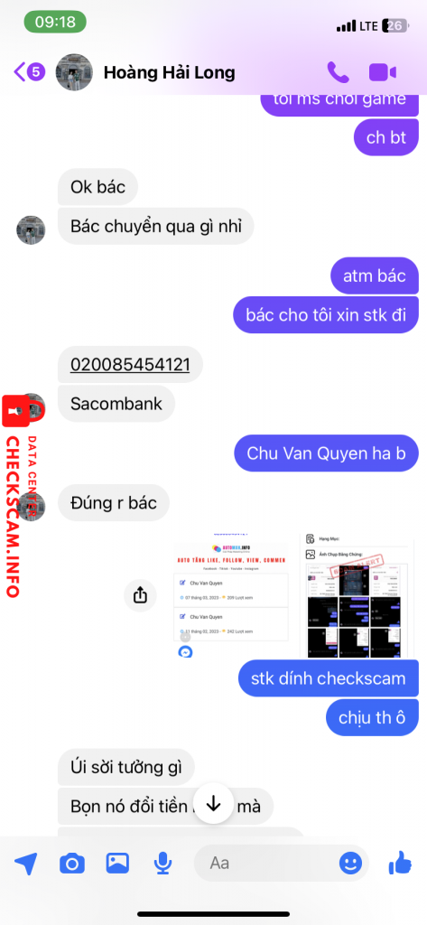 Scammer Alert: CHU VAN QUYEN Reported: November 16, 2024 Scammer Information Full Name: CHU VAN QUYEN Payment Gate: SACOMBANK Payment Account: 020085454121 Category: Marketplace scams Source: Checkscam Evidence Files Report Description Scam acc valorant Link fb: fb.com/100065764266230 Comments Your comment Add Comment No comments yet. Be the first to share your experience with this scammer.