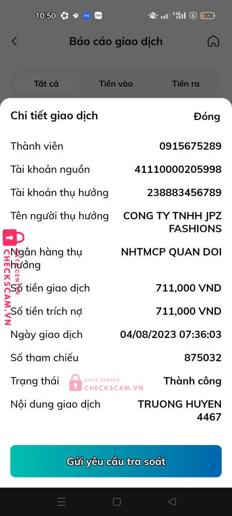 Scammer Alert: Công ty TNHH JPZ FASHIONS