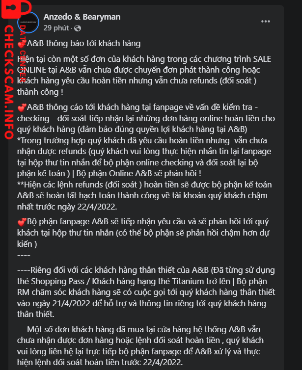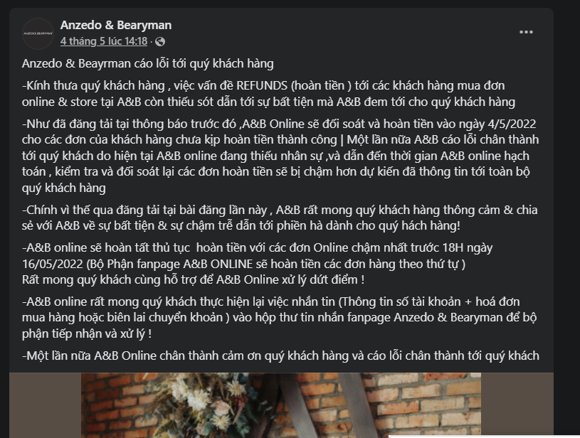 Facebook thì cứ copy thông báo cáo lỗi và đổi ngày hẹn khách hàng.