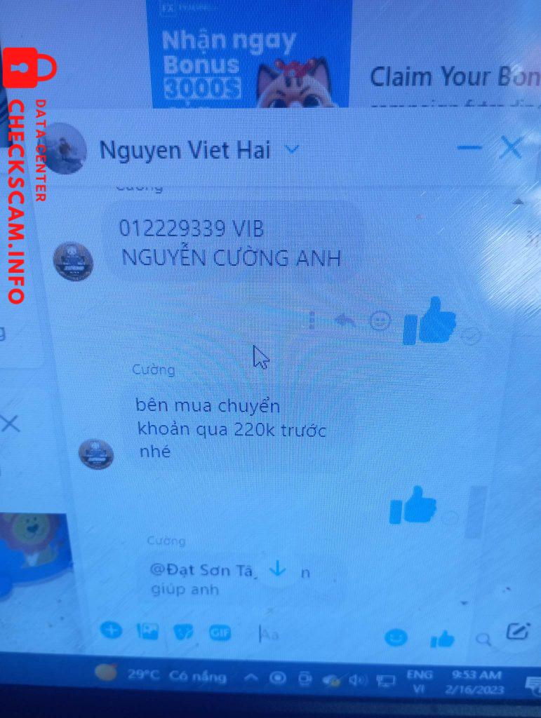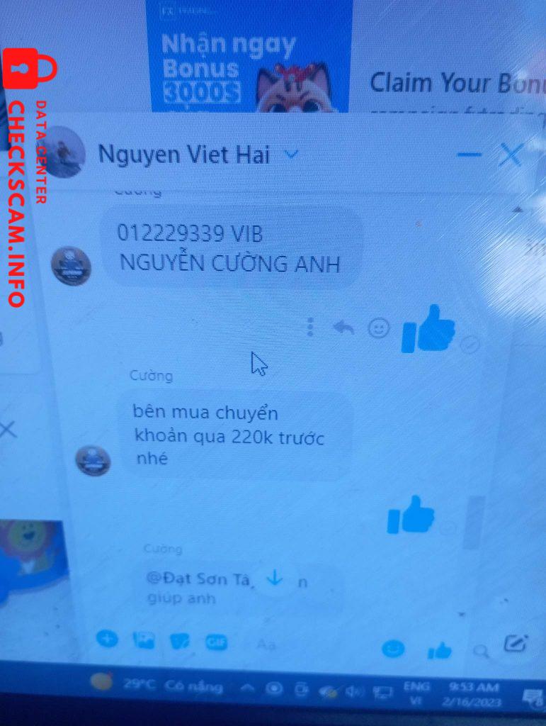 Scammer Alert: cường Aanh Reported: November 16, 2024 Scammer Information Full Name: cường Aanh Phone Number: 0962280898 Payment Gate: VIB Payment Account: 012229339 Category: Marketplace scams Source: Checkscam Evidence Files Report Description lừa đảo chiếm đoạt tài sản Comments Your comment Add Comment No comments yet. Be the first to share your experience with this scammer.