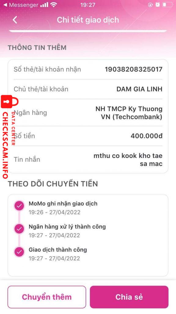 Scammer Alert: Dam Gia Linh Reported: November 16, 2024 Scammer Information Full Name: Dam Gia Linh Payment Gate: Techcombank Payment Account: 19038208325017 Category: Marketplace scams Source: Checkscam Evidence Files Report Description Ck xong block, ko ship card Comments Your comment Add Comment No comments yet. Be the first to share your experience with this scammer.