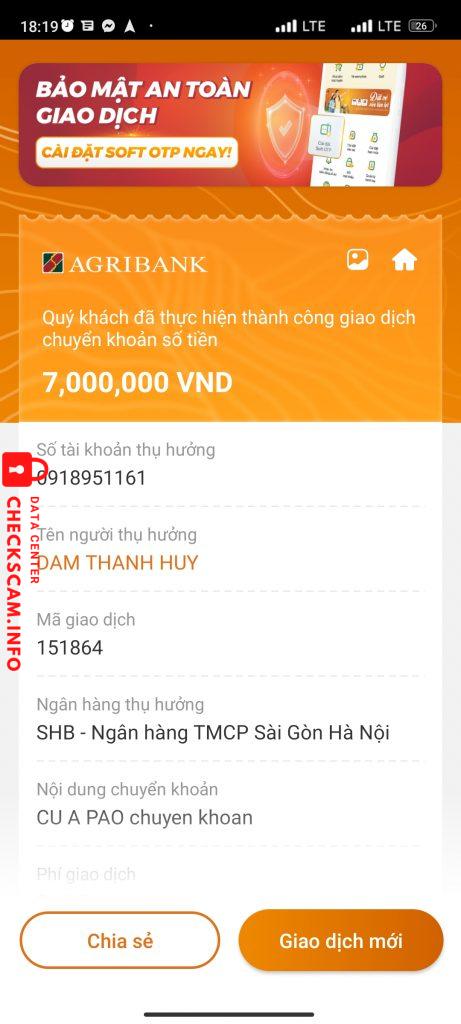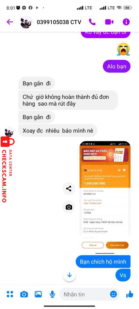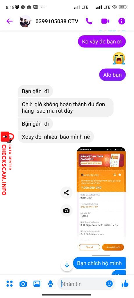 Scammer Alert: DAM THANH HUY Reported: November 16, 2024 Scammer Information Full Name: DAM THANH HUY Payment Gate: SHB Payment Account: 0918951161 Category: Marketplace scams Source: Checkscam Evidence Files Report Description Lừa tôi và bắt tôi mua đơn hàng này hết đến đơn nọ đến lúc tôi bảo muốn rút tiền thì không cho Comments Your comment Add Comment No comments yet. Be the first to share your experience with this scammer.