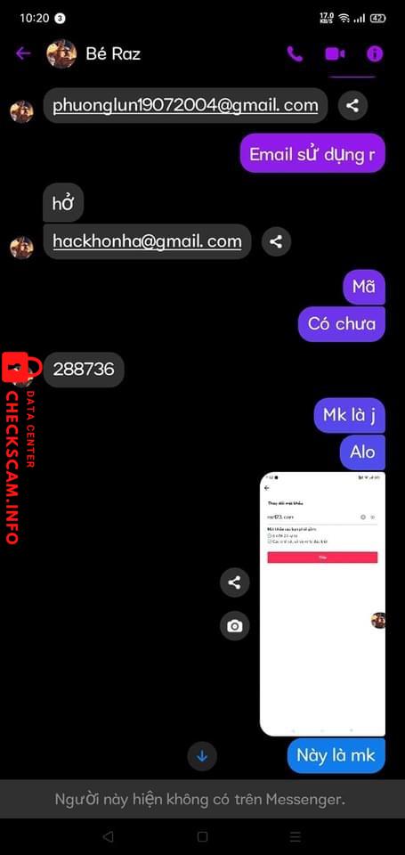 Scammer Alert: Đan Vũ Reported: November 16, 2024 Scammer Information Full Name: Đan Vũ Phone Number: 0381638383 Payment Gate: Momo Payment Account: 0381638383 Category: Marketplace scams Source: Checkscam Evidence Files Report Description Mua acc rồi đưa mật khẩu sai Comments Your comment Add Comment No comments yet. Be the first to share your experience with this scammer.