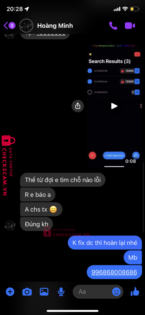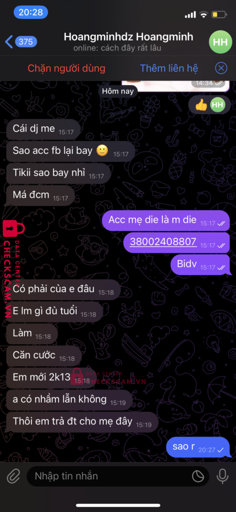 Scammer Alert: DANG DINH HUNG Reported: November 16, 2024 Scammer Information Full Name: DANG DINH HUNG Payment Gate: BIDV Payment Account: 38002408807 Category: Marketplace scams Source: Checkscam Evidence Files Report Description Đã tag tg nhưng khi làm được không để ý có quay được không lúc sau vào thấy không quay được vào đã bị chặn cả mes lẫn telegram Comments Your comment Add Comment No comments yet. Be the first to share your experience with this scammer.