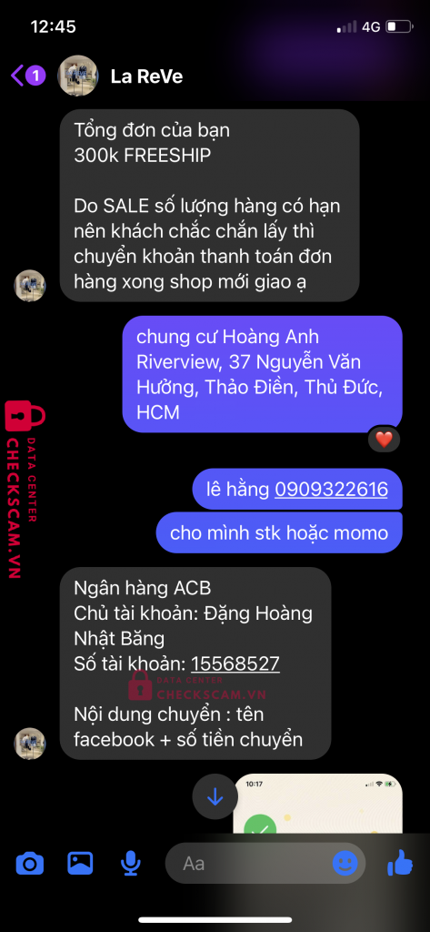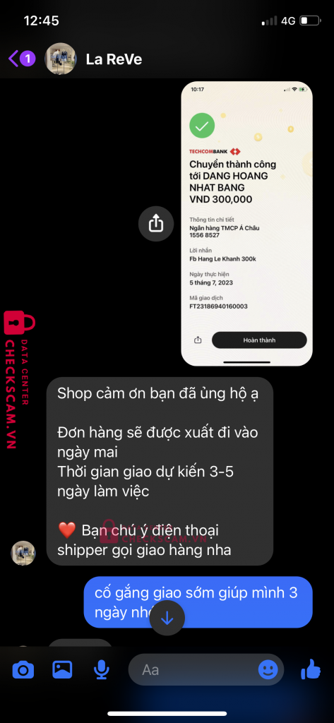 Scammer Alert: Đặng Hoàng Nhật Băng Reported: November 16, 2024 Scammer Information Full Name: Đặng Hoàng Nhật Băng Payment Gate: ACB Payment Account: 15568527 Category: Marketplace scams Source: Checkscam Evidence Files Report Description Fake shop online, mua hàng, yêu cầu chuyển trước và block tài khoản khách hàng Comments Your comment Add Comment No comments yet. Be the first to share your experience with this scammer.