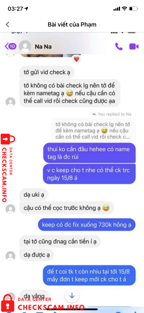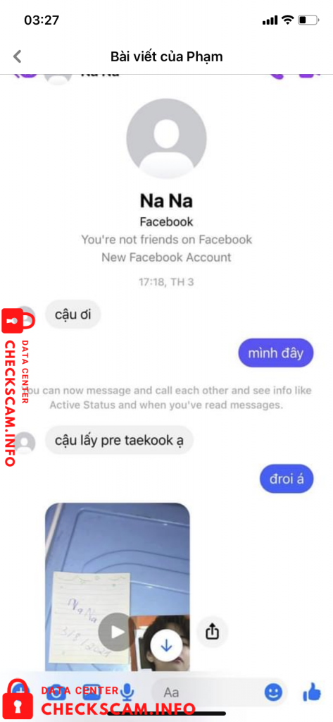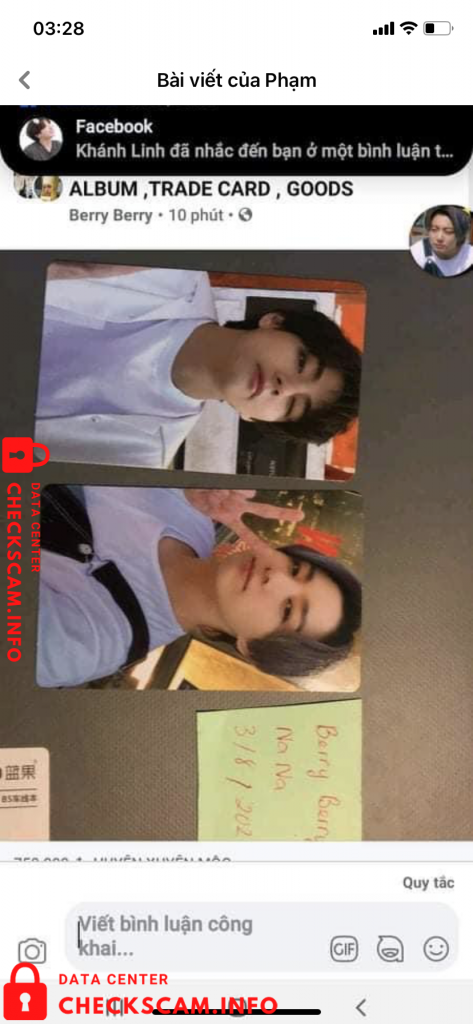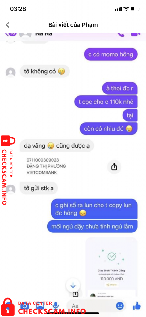 Scammer Alert: Dang Thi Phuong Reported: November 16, 2024 Scammer Information Full Name: Dang Thi Phuong Payment Gate: Vietcombank Payment Account: 0711000309023 Category: Marketplace scams Source: Checkscam Evidence Files Report Description ❌CẢNH BÁO SCAM❌ Comments Your comment Add Comment No comments yet. Be the first to share your experience with this scammer.
