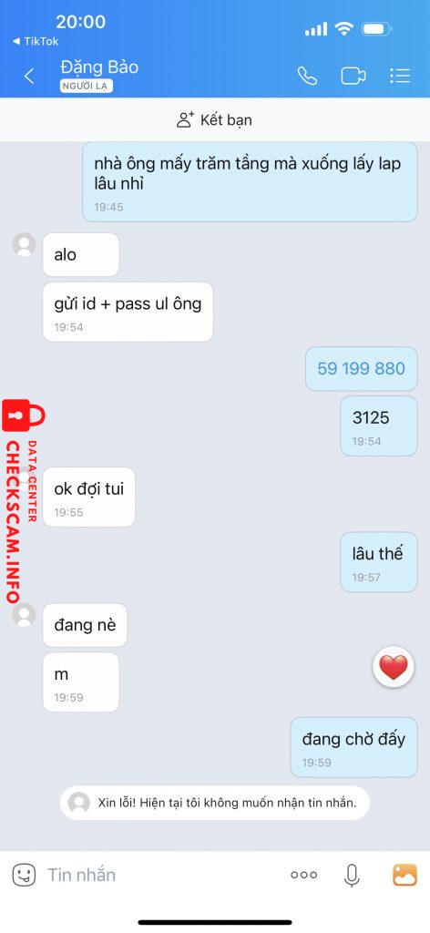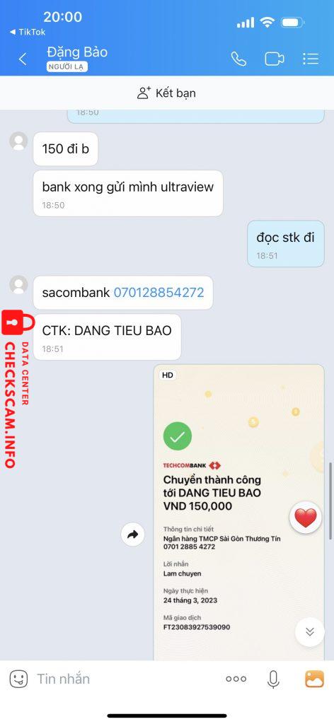 Scammer Alert: DANG TIEU BAO Reported: November 16, 2024 Scammer Information Full Name: DANG TIEU BAO Payment Gate: SACOMBANK Payment Account: 070128854272 Category: Marketplace scams Source: Checkscam Evidence Files Report Description thằng này lừa đảo bank xong chặn Comments Your comment Add Comment No comments yet. Be the first to share your experience with this scammer.