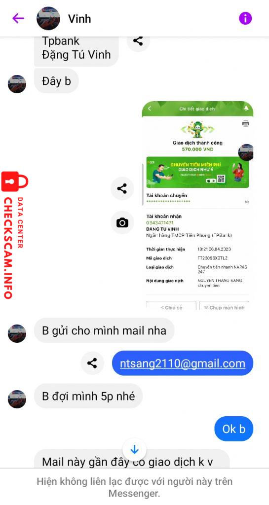 Scammer Alert: Đặng Tú Vinh Reported: November 16, 2024 Scammer Information Full Name: Đặng Tú Vinh Phone Number: 0343471471 Payment Gate: Tp Bank Payment Account: 0343471471 Category: Marketplace scams Source: Checkscam Evidence Files Report Description Scam tiền paypal Comments Your comment Add Comment No comments yet. Be the first to share your experience with this scammer.