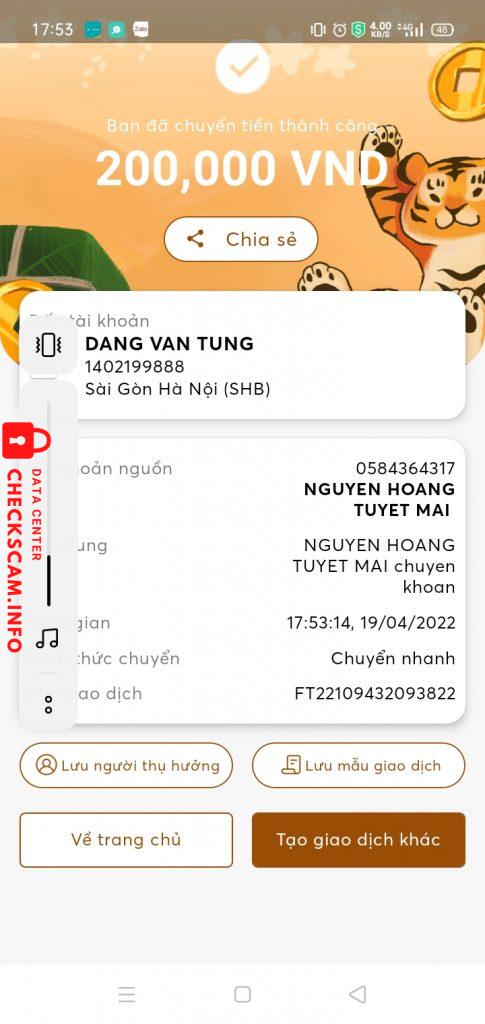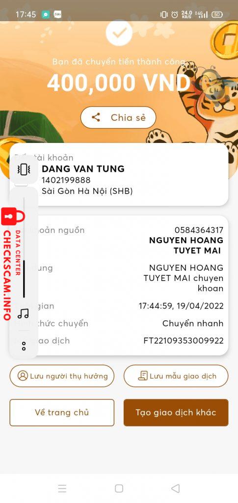 Scammer Alert: DANG VAN TUNG Reported: November 16, 2024 Scammer Information Full Name: DANG VAN TUNG Payment Gate: SHB Payment Account: 1402199888 Category: Marketplace scams Source: Checkscam Evidence Files Report Description lừa đảo làm trên app, ban đầu sẽ chuyển tiền nhưng lần 2 sẽ scam Comments Your comment Add Comment No comments yet. Be the first to share your experience with this scammer.