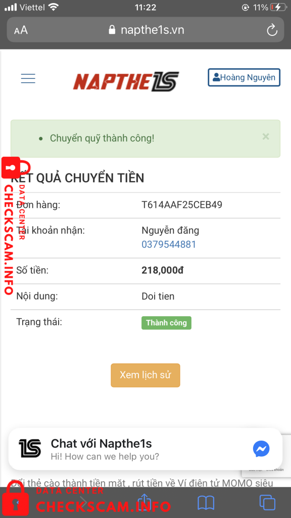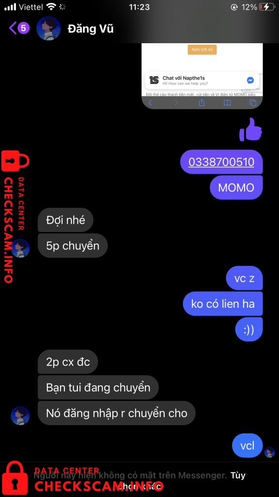 Scammer Alert: Đăng Vũ Reported: November 16, 2024 Scammer Information Full Name: Đăng Vũ Phone Number: 0379544881 Payment Gate: Napthe1s Payment Account: 0379544881 Category: Marketplace scams Source: Checkscam Evidence Files Report Description Thanh niên này scam,mình có nhờ nó đổi tiền từ napthe1s sang momo.Lúc mình bank xog chụp bill gửi nó thì nó block mình luôn!!! Comments Your comment Add Comment No comments yet. Be the first to share your experience with this scammer.
