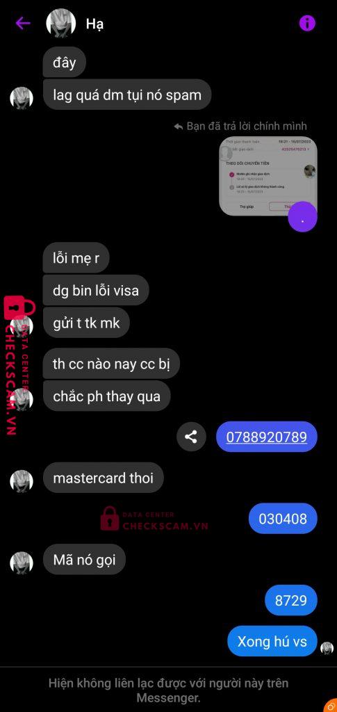 Scammer Alert: Đặng Xuân Hạ Reported: November 16, 2024 Scammer Information Full Name: Đặng Xuân Hạ Phone Number: 0327359326 Payment Gate: Momo Payment Account: 0327359326 Category: Marketplace scams Source: Checkscam Evidence Files Report Description Lk mm bên nó xog bị lỗi visa, kêu nó vào fix hộ, fix xong nó chuyển hết tiền trong mm mình vô momo nó Comments Your comment Add Comment No comments yet. Be the first to share your experience with this scammer.